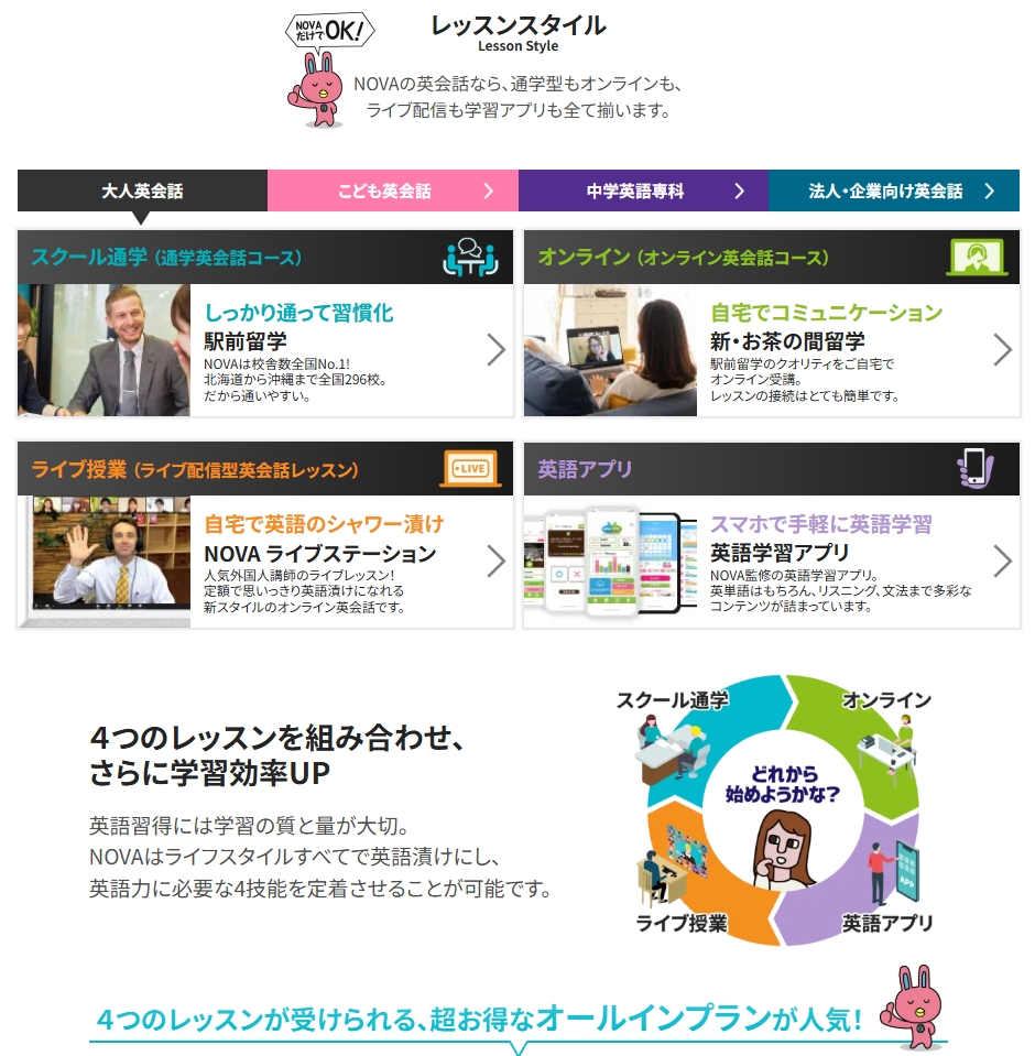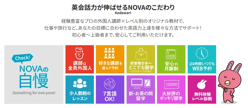 他の英会話スクールと比較して、NOVAには以下のような特長があります。